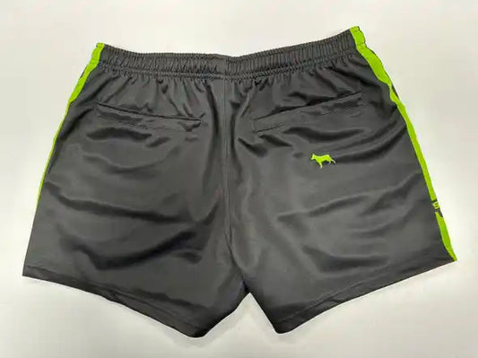 Royal Fitness Yellow on Black Footy Shorts with 2 side pockets + 2 back pockets
