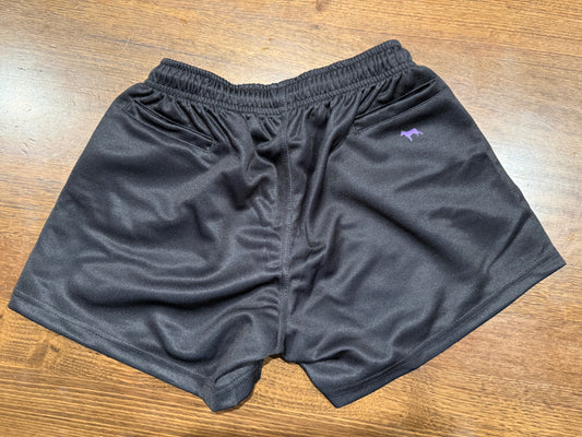 Royal Fitness Purple on Yellow Footy Shorts with 2 side pockets + 2 back pockets